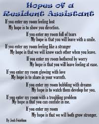 3) If you let them, your residents will be your best friends. They will never leave your room. This is what the office you work for wants you to do. However, it makes all rule enforcement very awkward. It also makes sleeping difficult because people will always be in your bed.